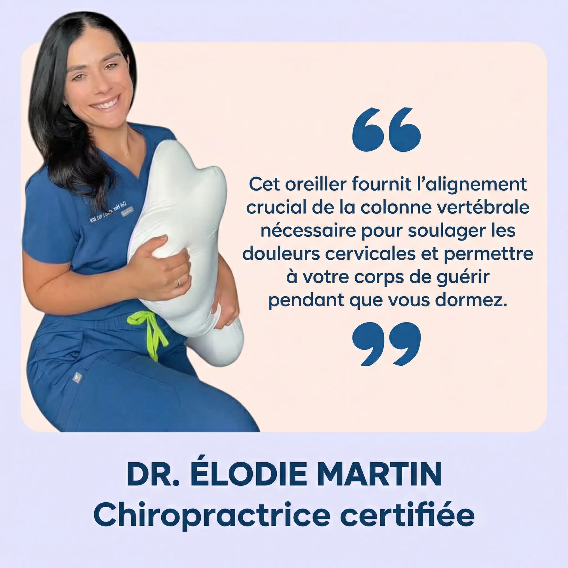Février 2026DR. ÉLODIE M.Verified BuyerJe le recommande à tous mes patients. J’adore la conception et la fonctionnalité de cet oreiller. ReliefCraft a fait un excellent travail en le créant !