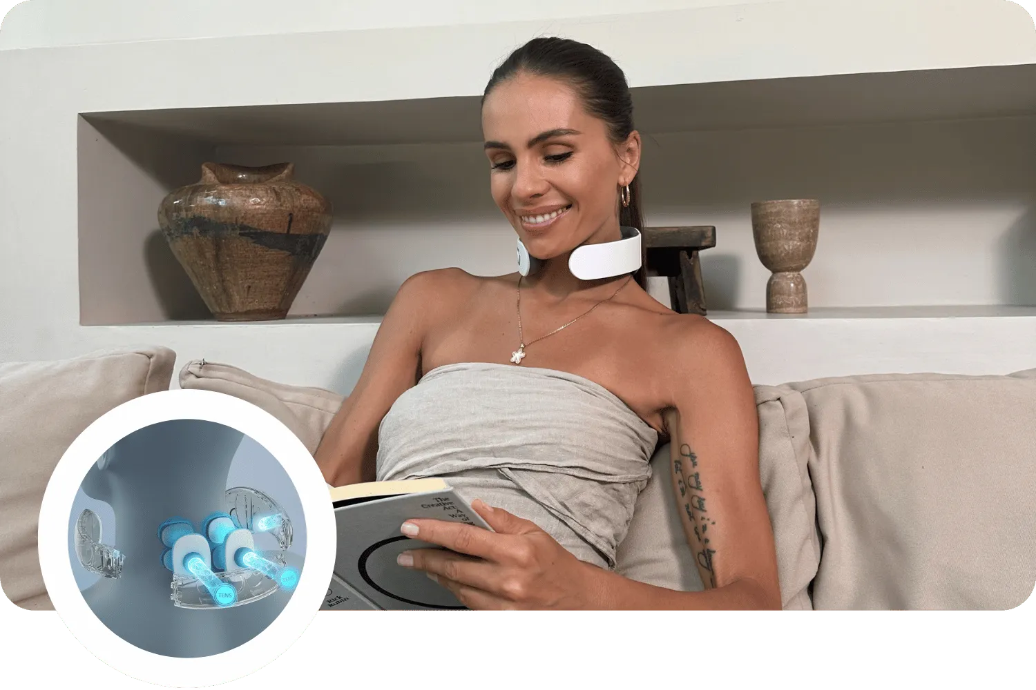 C’est exactement cette technique qu’utilise Neckrest® avec la technologie innovante RelaxTec® triple. Inspirée d’études et de connaissances scientifiques issues de la thérapie de la douleur.