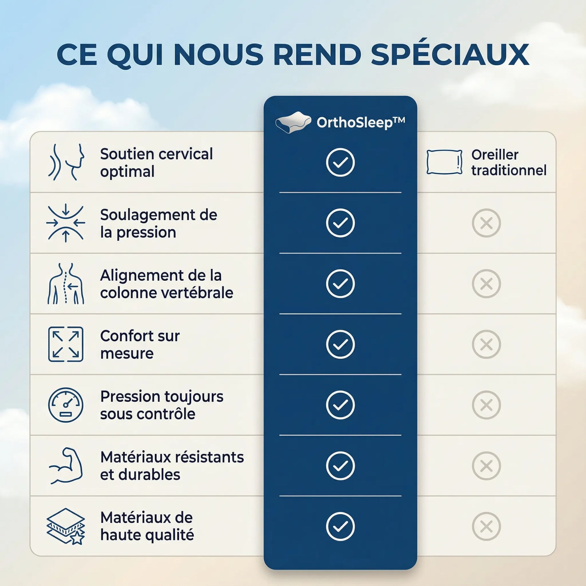 OrthoSleep™ est conçu pour protéger votre cou, en offrant un support ergonomique ciblé.